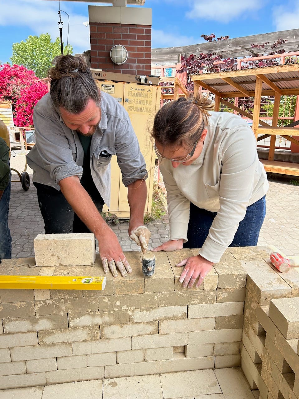 It's hard to sum up the week, honestly. It was fun, fascinating, messy, and at times challenging experience. I've never built anything like this before! I spent half a day drilling bricks. I learned that I have a weirdly good eye for whether something is level, but am terrible at guessing weights. I got to make something with a community of people who were all curious, engaged, and thoughtful. It was just overall really fun. Here are a ton of photos:
