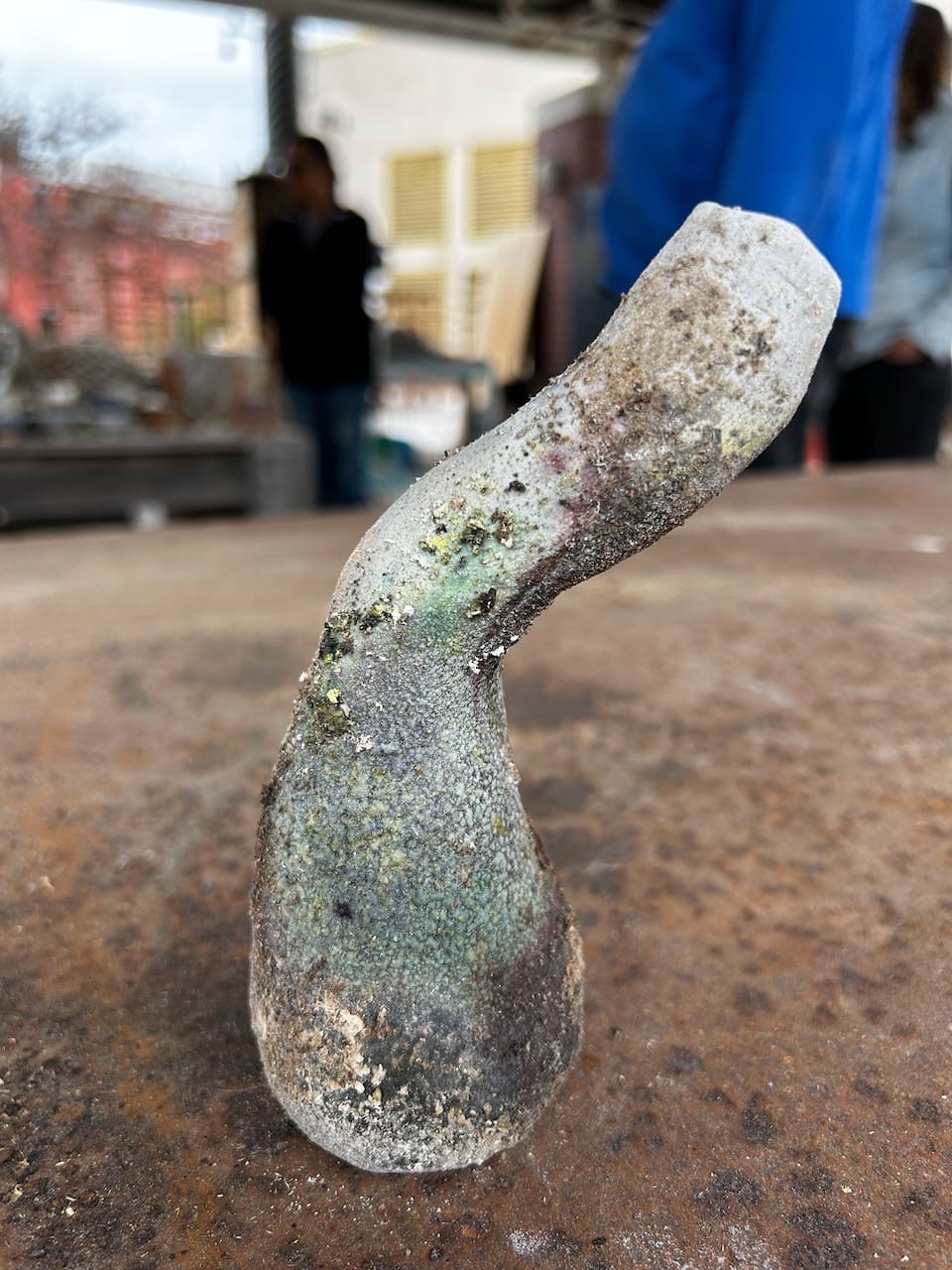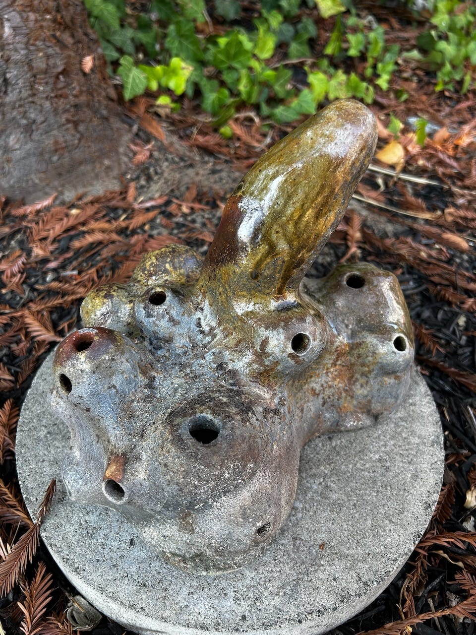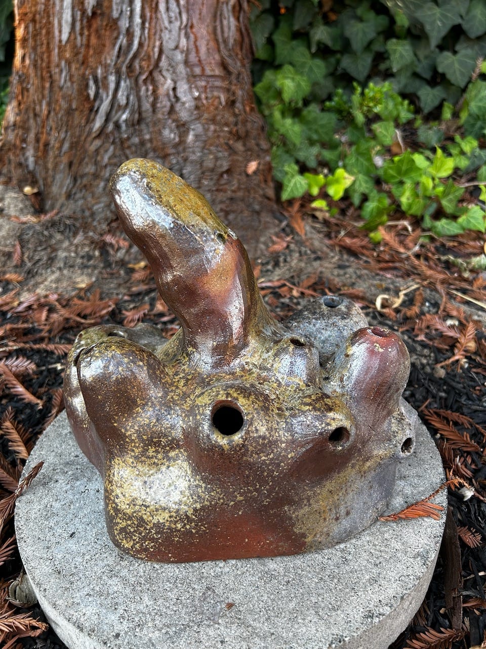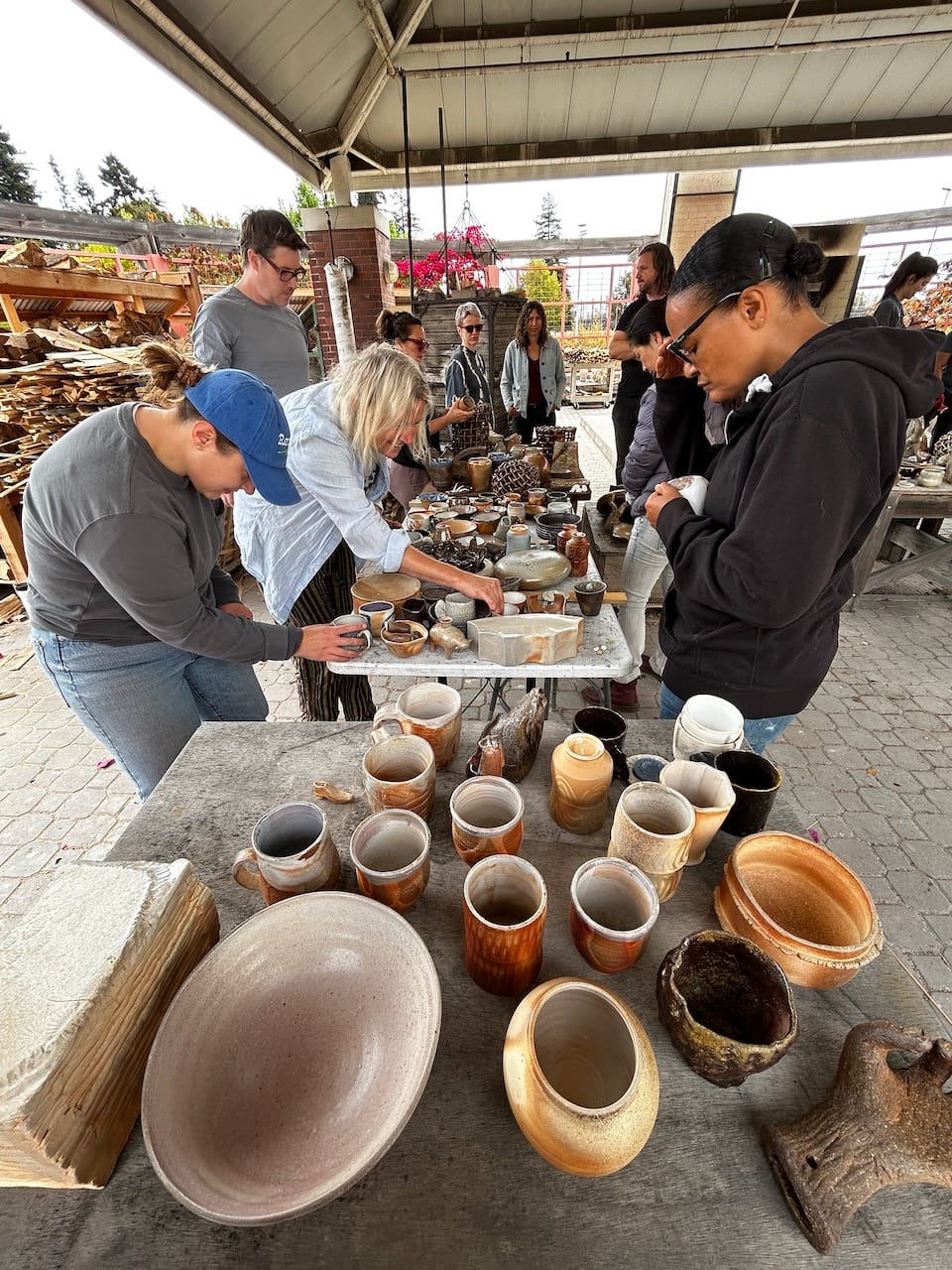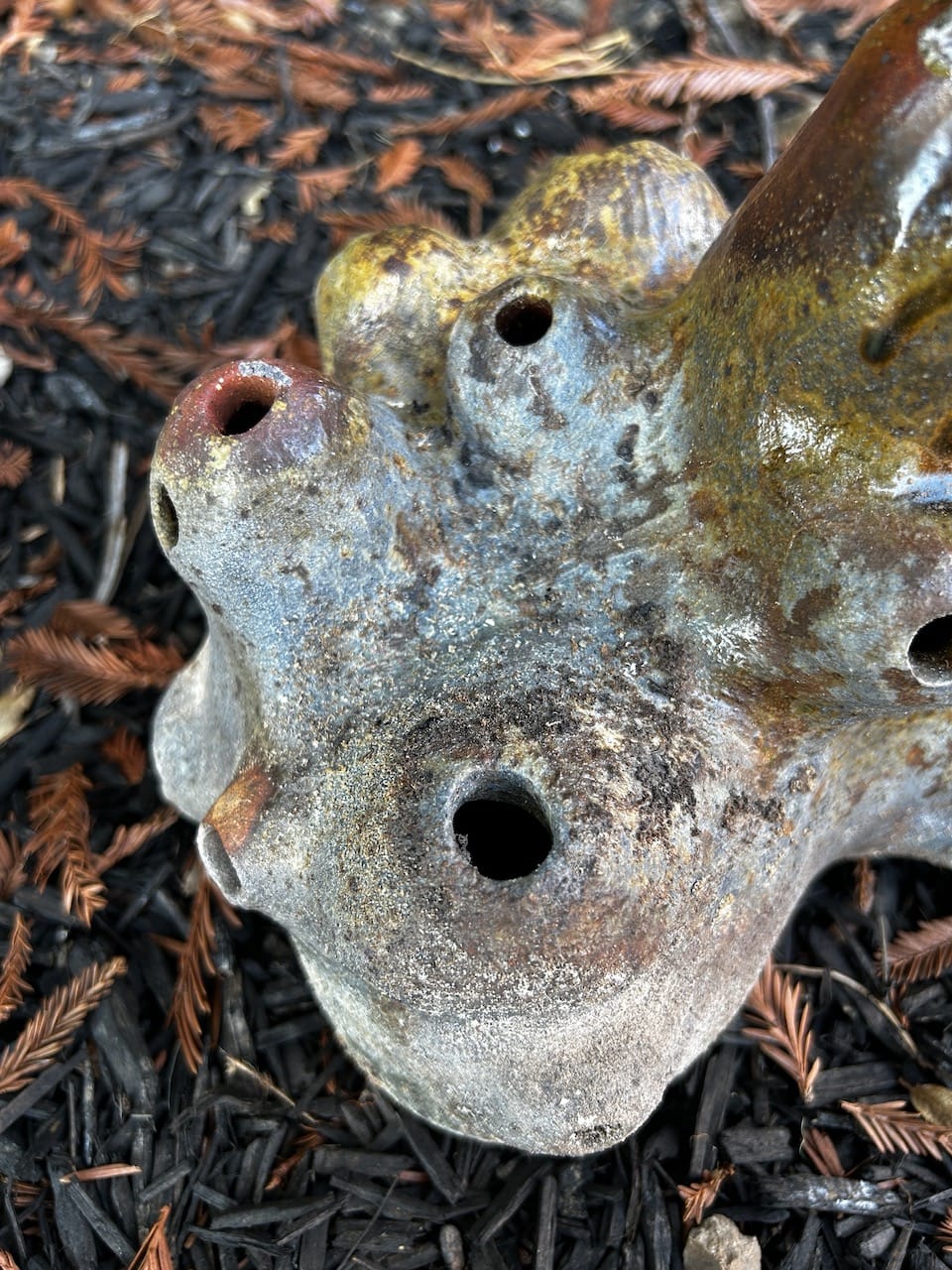 Last month I talked about the first firing of the wood kiln that I helped build at Laney College. But I didn't tell you how things turned out! We unloaded in September, and it was really cool to see how everybody's pieces turned out. There were some disasters, some duds, and some amazing stuff. I didn't go in with big dreams for my own pieces — I've never wood fired before so I really didn't know what to expect. But I'm really pleased. A bunch of mine came out looking a bit like they'd been excavated from a shipwreck at the bottom of the ocean, which is exactly what I like.