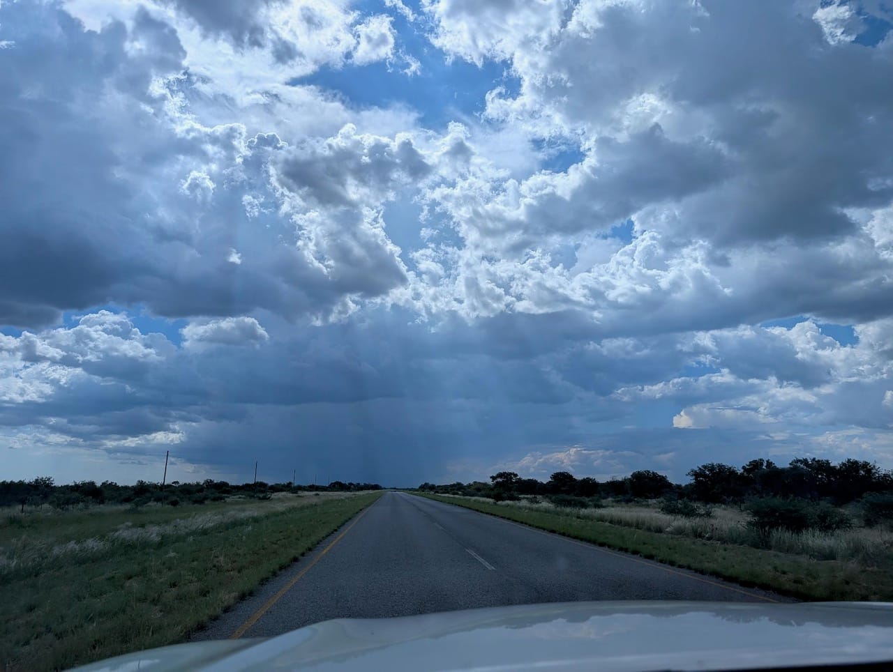 Over the course of five days we drove nearly 2,000 km. And as we drove, it became common for someone to call out "new planet!" That really was how it felt. In the morning, we'd begin on a green planet, with a blue-grey sky and a soft, ethereal lighting and giraffes watching us from the trees.