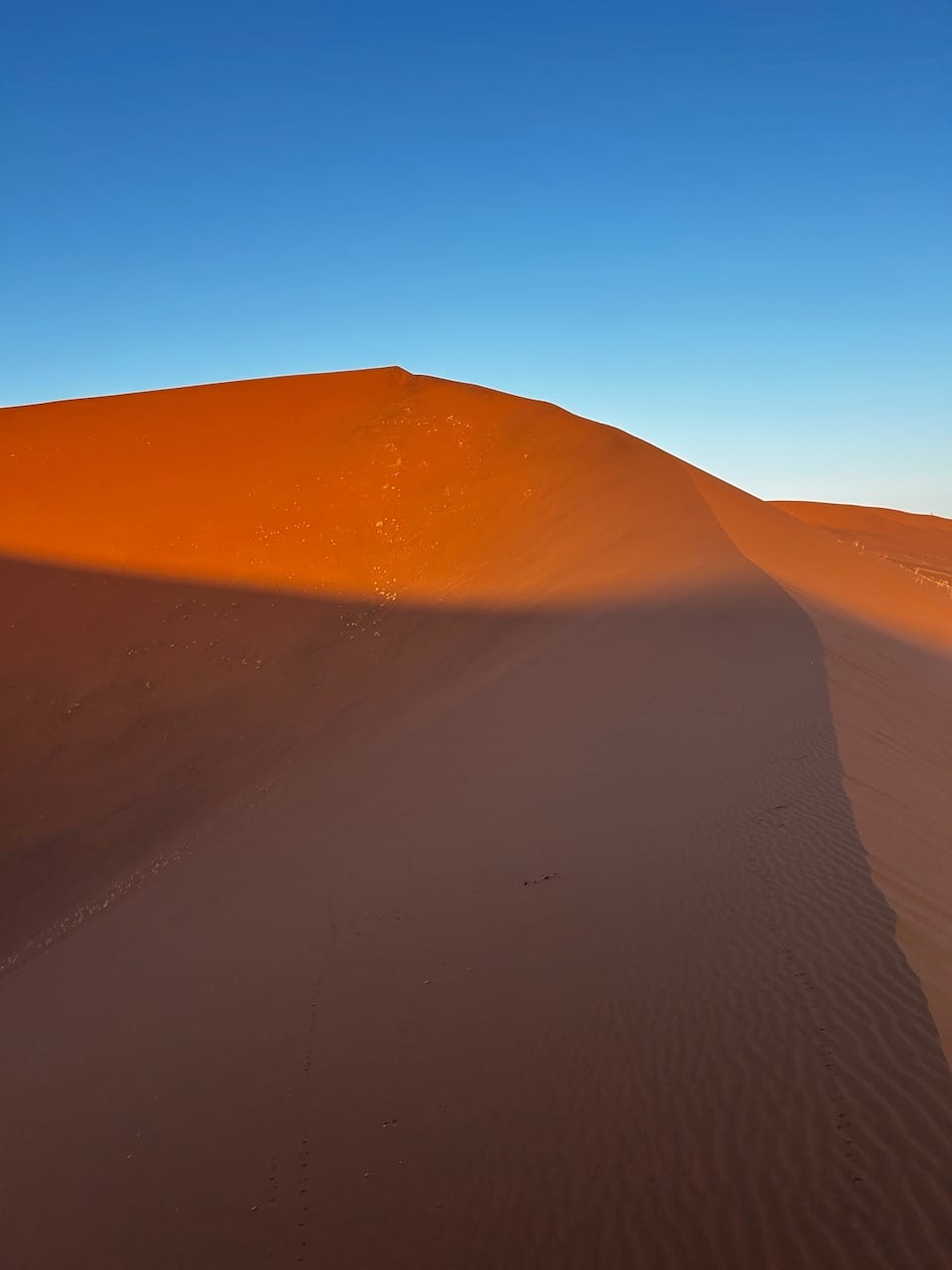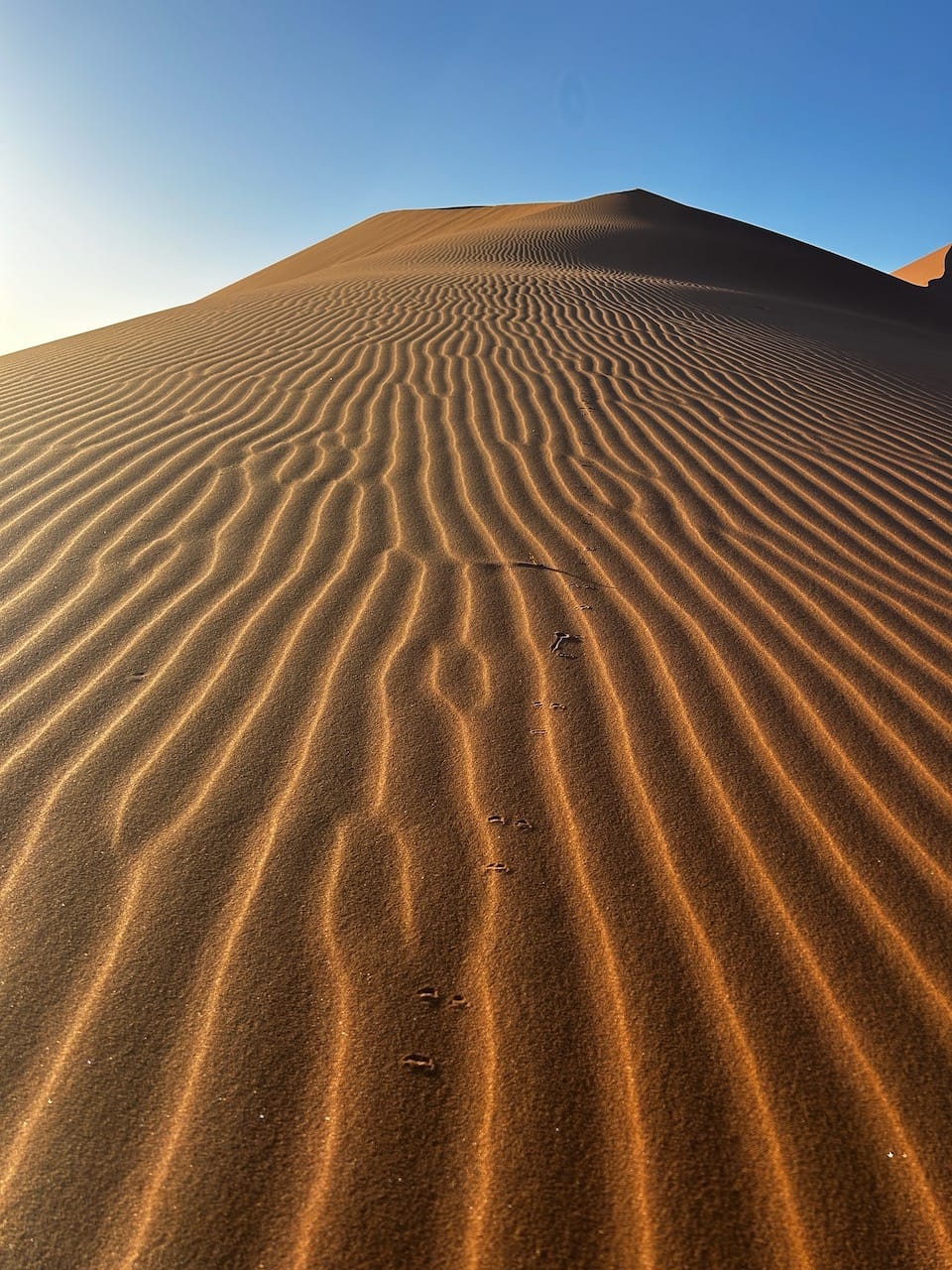 From there, we'd turn into a sea of red dunes, whose sand had originally come from a mountain in South Africa that was blown out to sea, and then back onto land to find its final home in Namibia, making the oldest desert in the world.