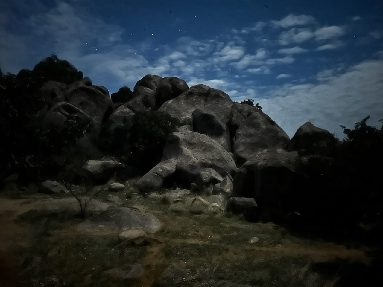 One night, I woke up at 3am and sat outside our tents for a while, listening to the landscape. The moon was bright enough that I could take this strange, painting like photo on my crappy old iPhone.