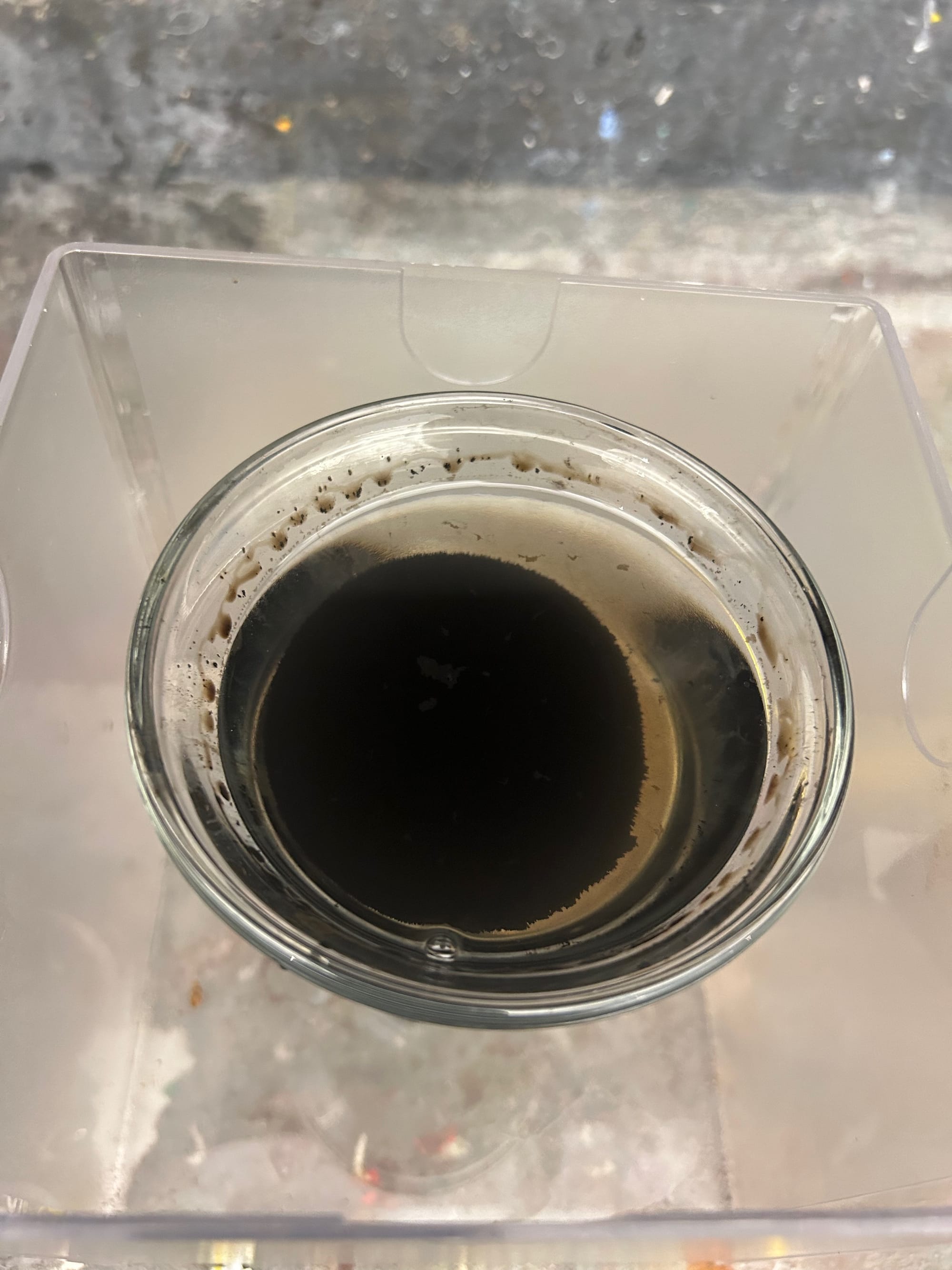 The next stage of this process in the video involved using a vacuum chamber to dry out this material into a powder. I didn’t have a vacuum chamber on hand, and I couldn’t find one on craigslist or FB marketplace (nor could I really justify spending $100 on one on ebay). So I tried to dry the magnetite out using a bunch of silica packs made for dessication. It took a long time, and it never got as dry as the video got with the vacuum chamber, but I figured it was perhaps good enough? With the mostly-dry magnetite ready, I added the final step: kerosene. And that’s it!