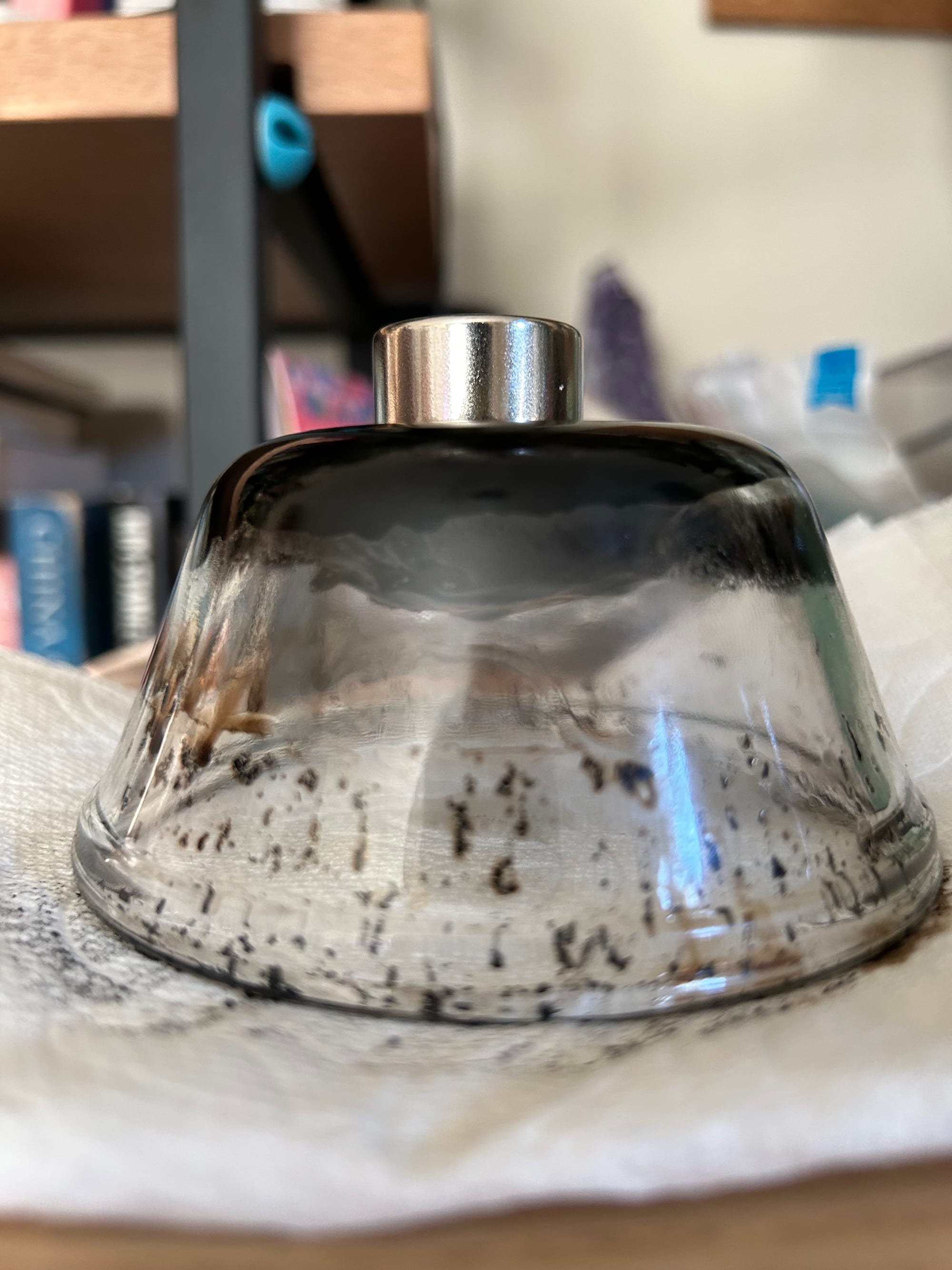 I’m back to taking classes at my local community college, and for our first project we’re playing with shape and form, and I decided it was finally time to try to make some ferrofluid. I’ll talk more about the full sculpture design in a future post, when I have more of the other bits done, but for right now let’s talk ferrofluid.